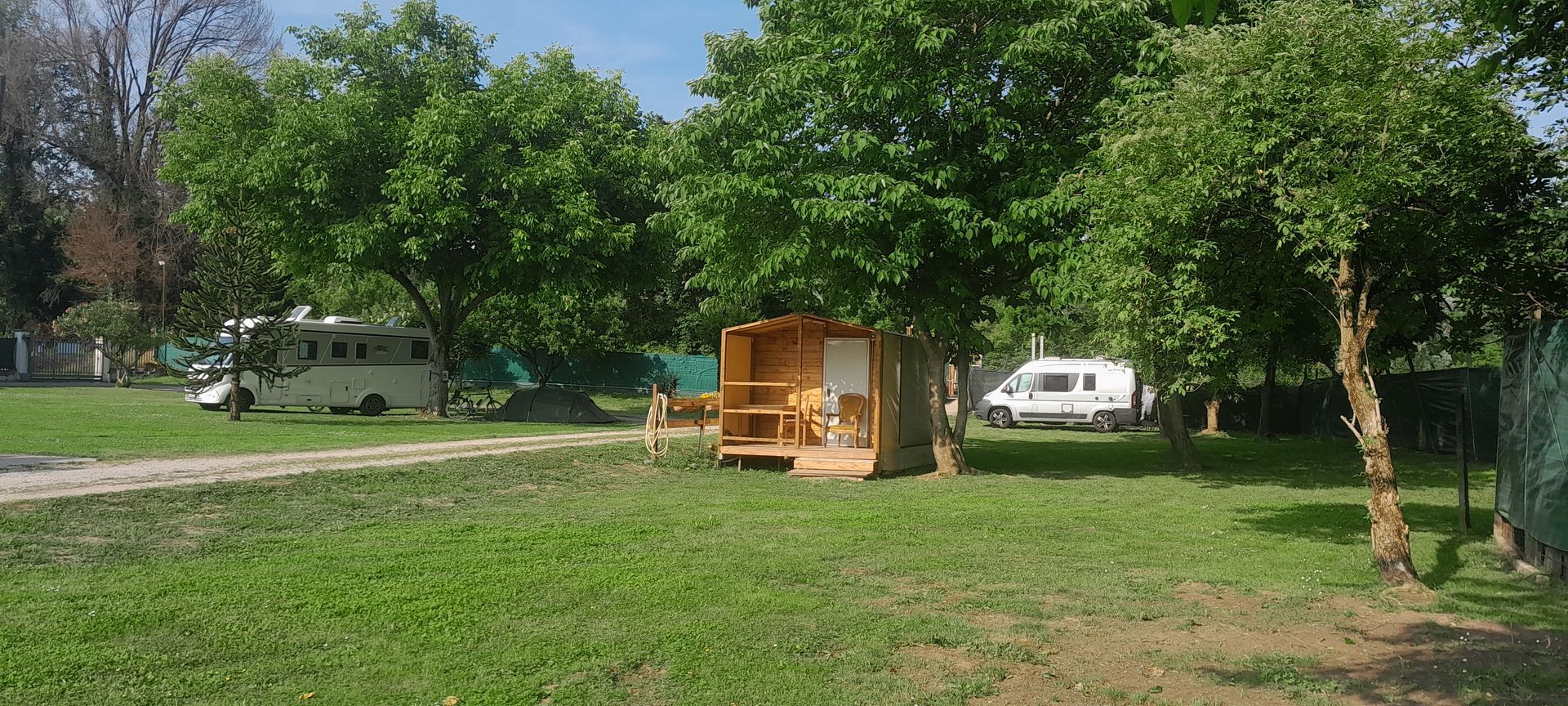 - Caravan anni 80, with double bed and electricity, fan and veranda with table