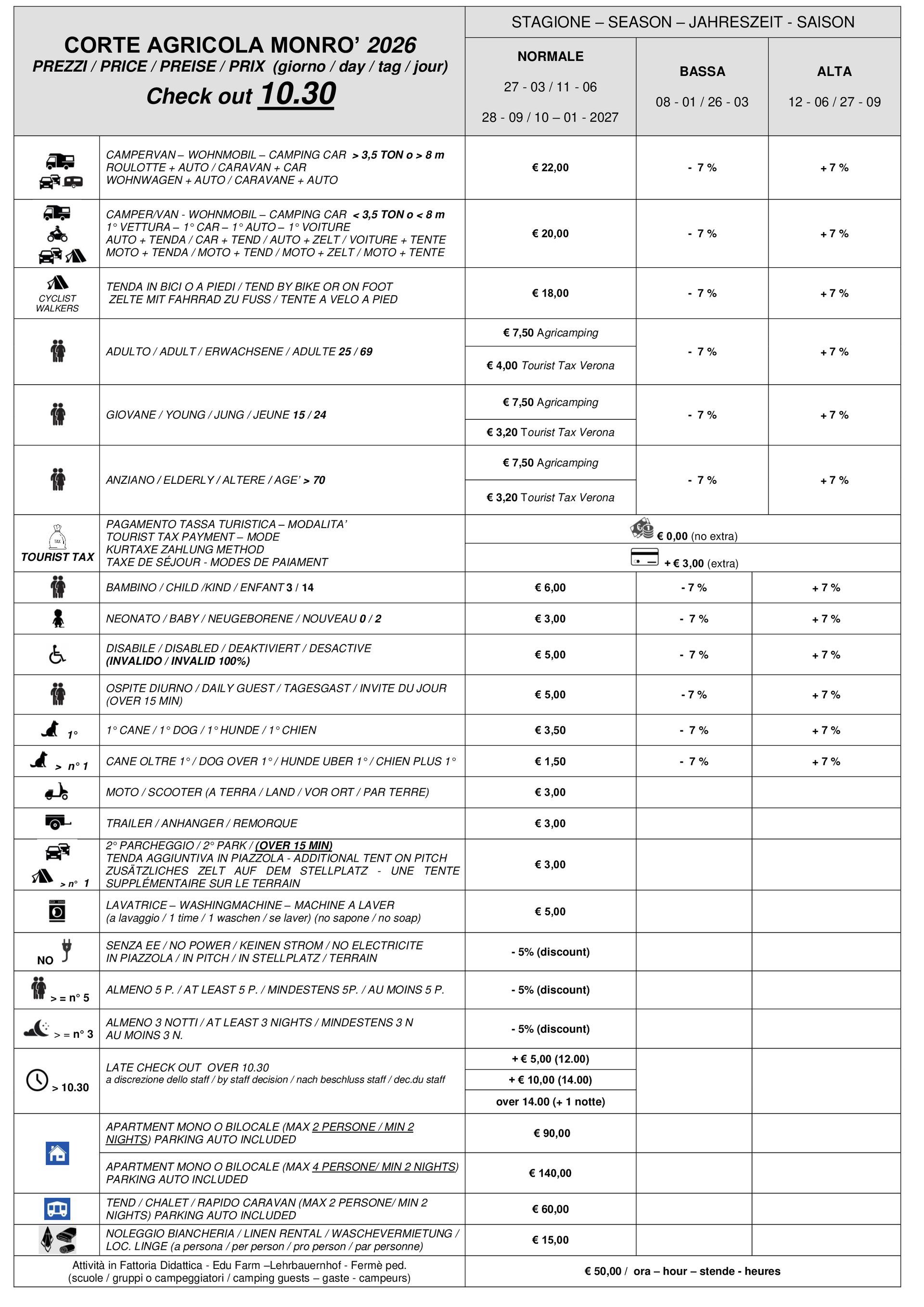 - Bitte kontaktieren Sie uns einige Stunden im Voraus telefonisch oder per message S unter info@corteagricolamonro oder +39 045 8060041 (Büronummer mit WhatsApp)